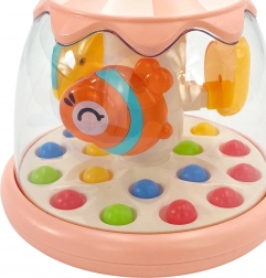 Odkryj magię prostej interaktywnej zabawy: wystarczy nacisnąć duży górny przycisk, a przezroczysta kopuła zamieni się w mini karuzelę ze zwierzątkami i podskakującymi kuleczkami. Dzieci doświadczą barwnych efektów, ruchu i delikatnych dźwięków, które naturalnie rozwijają ich zmysły.