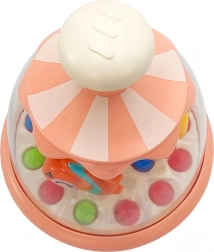 Duży górny przycisk jest idealny dla małych rączek. Jedno naciśnięcie uruchamia wirujące zwierzątka i kuleczki, tworząc fascynującą karuzelę.