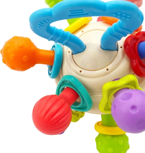 Łączy cechy gryzaka i grzechotki, oferując dzieciom różne formy zabawy.