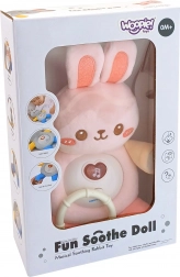 Interaktywny króliczek w różowym kolorze pomaga maluszkowi się wyciszyć i łatwiej zasnąć. Miękka powierzchnia i delikatne wypełnienie gwarantują przyjemne przytulanie, a melodie i stonowane światełko tworzą pogodną atmosferę do odpoczynku.