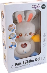 Interaktywny pluszowy króliczek został zaprojektowany dla najmłodszych dzieci od urodzenia. Miękka powierzchnia, bezpieczne haftowane detale oraz kojące melodie pomagają maluszkowi szybciej zasnąć i czuć się bezpiecznie. Element świetlny na brzuszku tworzy przyjemną atmosferę podczas wieczornej rutyny.