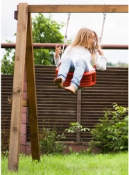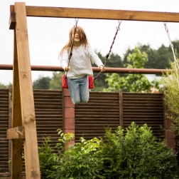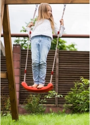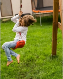 Czerwona plastikowa huśtawka z ergonomicznie ukształtowanym siedziskiem oferuje dzieciom zabawę i rozwój motoryki w ogrodzie i w domu. Dzięki mocnym linom o długości regulowanej w zakresie 105–175 cm łatwo dopasujesz wysokość zawieszenia do różnych miejsc – od pokoju dziecięcego po taras czy pergolę.