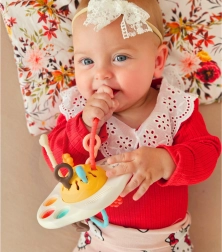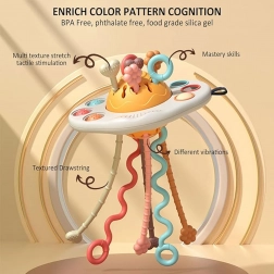 Odkryj wielofunkcyjną sensoryczną zabawkę w kształcie UFO, łączącą gryzak, grzechotkę oraz interaktywne „przeciągane” sznurki. Wspiera rozwój motoryki i koordynacji, stymuluje wzrok, słuch i dotyk, a jednocześnie przynosi ulgę podczas ząbkowania. Bezpieczne materiały bez BPA i łatwa pielęgnacja czynią ją idealnym wyborem dla maluchów od 6 miesięcy.