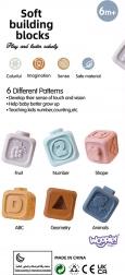 Klocki można układać w wieżę, ściskać dla efektu dźwiękowego oraz używać podczas zabaw wodnych. Zmienna forma zabawy wspiera małą motorykę i koordynację.