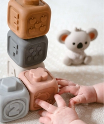 Silikonowe klocki są aksamitne w dotyku i działają jak delikatny gryzak, który łagodzi dziąsła i jest bezpieczny do codziennego użytkowania.