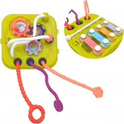 Odczepiany panel z mini ksylofonem rozbudza miłość do muzyki i wspiera poczucie rytmu oraz percepcję słuchową. Dziecko ćwiczy precyzję chwytu i koordynację podczas uderzania w klawisze.