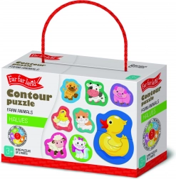 Zabawne puzzle obrysowe dla najmłodszych z motywem zwierzątek z farmy. Zestaw zawiera 8 oddzielnych obrazków po 2 elementy – idealne na pierwsze układanki i rozwój małej motoryki. Proste, dwuelementowe układanki, urocze zwierzątka z farmy oraz nauka przez zabawę ucieszą każde małe dziecko.