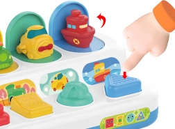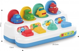 Ta trwała i starannie wykonana interaktywna zabawka z mechanizmem pop-up dostarcza dzieciom od 18 miesięcy nieskończenie dużo zabawy i nauki. Kolorowe pojazdy po aktywacji różnymi elementami sterującymi wynurzają się, natychmiast nagradzając dziecko i zachęcając do ponownych prób.