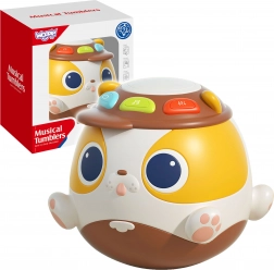 Ta interaktywna zabawka zawiera przyciski, które po naciśnięciu wywołują różne dźwięki i efekty świetlne, wspierając rozwój zmysłowy twojego dziecka.