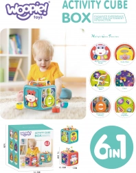 Kolorowa interaktywna kostka WOOPIE oferuje 6 w 1 aktywności dla maluchów: pianinko ze światłami, dźwięki zwierząt, grę na refleks, wkładankę kształtów, zębatki, labirynt oraz obracany zegar. Rozwija małą motorykę, koordynację ręka–oko i percepcję sensoryczną. Bezpieczne wykonanie z zaokrąglonymi krawędziami i nietoksycznymi farbami. Odpowiednia od 6 miesięcy.