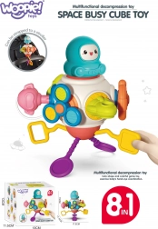 - 8 w 1 (obracający się astronauta, mechanizm zwijający/„gryzak”, spinner, naciągany powrót, kierownica z dźwiękami, klucz do otworu, przesuwany statek, przycisk z dźwiękiem)