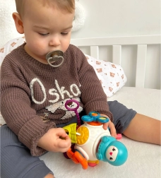 Obracający się astronauta, spinner oraz elementy przesuwane i naciskane utrzymują uwagę dziecka i wspierają naturalną naukę przez zabawę.