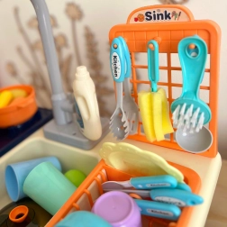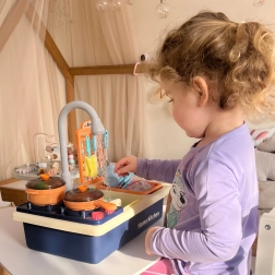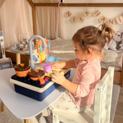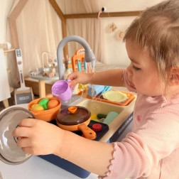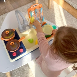 Wylewka z funkcjonalnym przepływem wody pozwala dzieciom na interaktywną naukę i zabawę jak w prawdziwej kuchni.