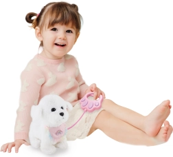 Ten miękki i przytulny pluszowy piesek o wysokości 22 cm daje dzieciom mnóstwo radości dzięki realistycznym ruchom i dźwiękom. Kabel z pilotem podłącza się do otworu na szyi i umożliwia łatwe sterowanie chodem oraz efektami. Dzięki połączeniu dotyku, klaśnięcia i przycisków zabawa jest intuicyjna i wciągająca.