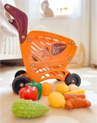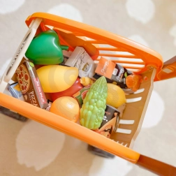 Wózek przynosi zabawę i naukę dzięki możliwości naśladowania prawdziwych zakupów, co rozwija u dziecka umiejętności samodzielności.