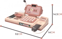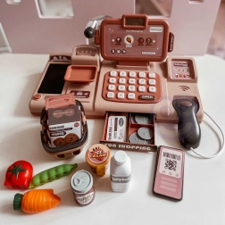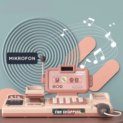 Kasa mówi po angielsku, odtwarza piosenki i klasyczne melodie. Działający mikrofon doda zabawie energii małego sprzedawcy.