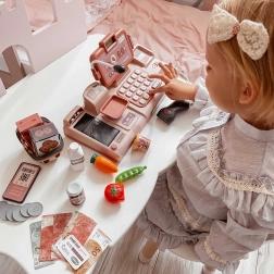 Dziecięca kasa WOOPIE z bogatym zestawem 25 akcesoriów zamieni każdy dzień w sklep pełen wyobraźni. Oferuje funkcjonalny skaner, wagę, mikrofon, terminal płatniczy i kalkulator. Dzieci mogą płacić gotówką, kartą i „telefonem”, wystawiać pierwsze rachunki i cieszyć się realistycznymi dźwiękami oraz melodiami – idealne do rozwijania wyobraźni i umiejętności społecznych od 3 lat.