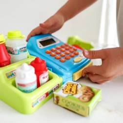 Dzieci mogą „piknąć” ciasteczka i inne produkty tak jak przy kasie w sklepie. Realistyczne dźwięki pobudzają wyobraźnię i wciągają do zabawy.