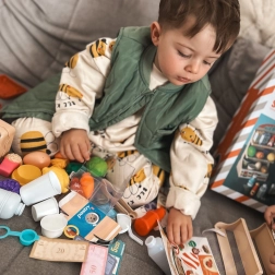 Zabawa w sklep wspiera samodzielne myślenie, komunikację i twórczą zabawę. Dzięki 42 elementom – od owoców i warzyw po napoje i konserwy – dzieci mogą tworzyć własne scenariusze i ćwiczyć codzienne sytuacje.