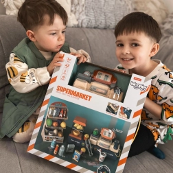 Z tym realistycznym zestawem supermarketu dzieci wypróbują rolę sprzedawcy i klienta. Kasa ze skanerem, działającą szufladą na pieniądze oraz papierowymi banknotami i monetami uczy podstaw finansowej świadomości i interakcji społecznych. W komplecie jest także waga oraz bogata oferta produktów.
