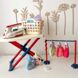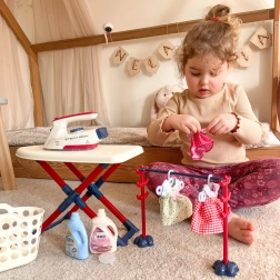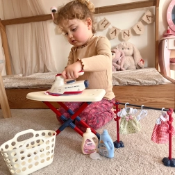 Zestaw do prasowania dla dzieci od marki Woopie przyniesie Twojemu dziecku mnóstwo zabawy podczas zabawy w małą gospodynię. Zawiera żelazko, deskę do prasowania, kosz na pranie oraz włącznie z wieszakami i ubraniami dla lalek, wszystko bezpieczne i dostosowane do potrzeb dzieci.