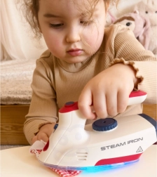 Żelazko jest zabawką bezpieczną dla dzieci, ponieważ się nie nagrzewa, ale jest wyposażone w wiele funkcji, które ożywiają zabawę: przycisk do imitacji prawdziwych dźwięków prasowania, światło LED oraz efekty dźwiękowe w formie piosenek. Ten zestaw jest idealny dla dzieci, które lubią naśladować rodziców w codziennych czynnościach.