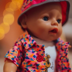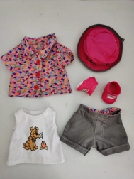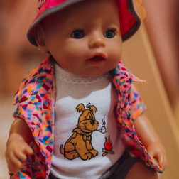 Ten kolorowy zestaw ubranek dla lalek to świetne uzupełnienie każdej dziecięcej kolekcji. Zawiera bluzkę z uroczym pieskiem, kolorową kurteczkę, czapeczkę, spodenki i buciki – wszystko w wesołych kolorach. Dzięki precyzyjnemu wykonaniu ubranka wyglądają realistycznie i łatwo się je zakłada.