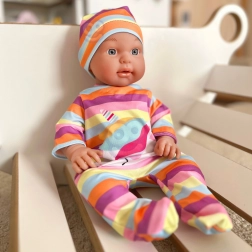 Stylowy zestaw ubranek z motywem jednorożca zamieni każdą lalkę w rozkoszne „niemowlę” gotowe do zabawy i przytulania. Kolorowe paseczki i dopasowana czapeczka przyciągają wzrok, a wygodny krój ułatwia przebieranie nawet młodszym dzieciom. Świetny wybór na prezent – opakowanie ma praktyczny uchwyt do łatwego przenoszenia.