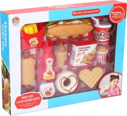 - Frytki, bagietka, napój, popcorn, parówka w bułce, ketchup, lody, ciasteczko
