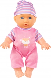 - Wydaje dźwięki: Lalka potrafi powiedzieć 'mama', 'tata', płakać i śmiać się.
