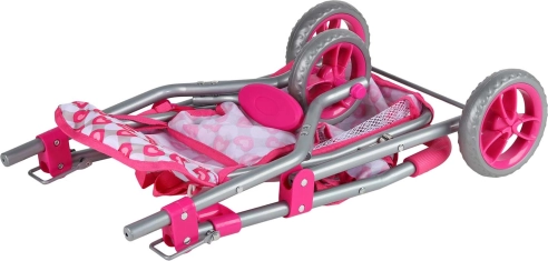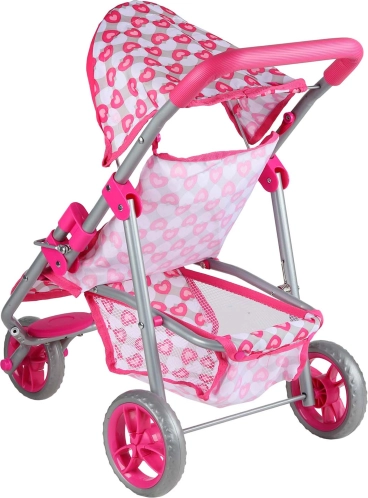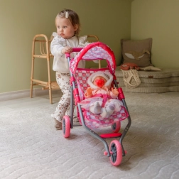 Ten różowy trójkołowy wózek dla lalek jest idealny dla dzieci od 3 lat, które uwielbiają realistyczną zabawę w dom. Lekka, a jednocześnie solidna metalowa rama i wygodne prowadzenie zapewniają bezpieczną i płynną jazdę po mieszkaniu oraz na zewnątrz. Stylowy pokrowiec w serduszka ucieszy każdą małą opiekunkę i łatwo go utrzymać w czystości – poszycie można zdjąć i wyprać.