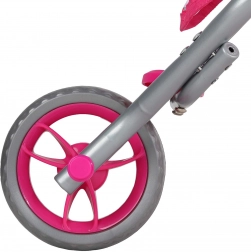 Metalowa konstrukcja jest stabilna, a jednocześnie lekka, dzięki czemu wózek dzieciom łatwo się prowadzi w domu i na spacerze.