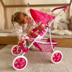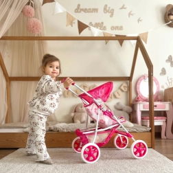 Wózek wyróżnia się niską wagą i solidną konstrukcją, dzięki czemu dzieciom łatwo się go prowadzi, a jednocześnie jest wytrzymały do codziennej zabawy.