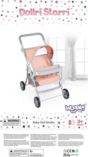 Stylowy wózek dla lalek WOOPIE Royal zachwyca lekką i stabilną konstrukcją, składaną budką, miękką piankową rączką oraz cichymi piankowymi kołami. Oferuje pasy dla bezpiecznego „przewożenia”, podnóżek i praktyczny koszyk na drobiazgi. Łatwo się składa dla oszczędności miejsca i jest idealny do zabawy w domu i na spacerach.