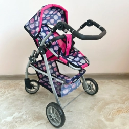 Lekka, a jednocześnie stabilna metalowa konstrukcja z miękką rączką jest przyjazna dla dziecięcych dłoni. Pojemny materiałowy koszyk pod siedziskiem pomieści wszystkie niezbędniki – butelkę, kocyk i drobne akcesoria. Składana budka chroni lalkę podczas zabawy „na słoneczku”, a wózek łatwo przechować.