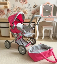 Wózek dla lalek 3w1 (głęboki, spacerowy, nosidełko/torba)