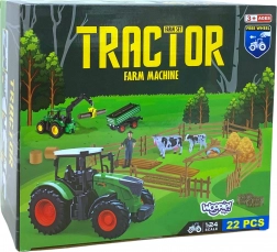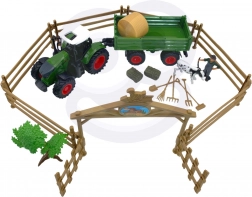 Zestaw zawiera traktor, figurki zwierząt i farmera oraz inne rolnicze akcesoria, które dopełniają realistyczną atmosferę farmy.