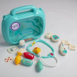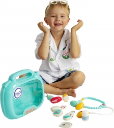 To wszystko mieści się w wygodnym kuferku z rączką, co zapewnia łatwe przenoszenie. Dziecko może rozwijać swoją wyobraźnię i bawić się w lekarza lub pacjenta!