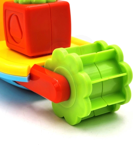 Łódź stabilnie unosi się na wodzie, a wbudowany kołowy młynek uruchamia się pod wpływem strumienia – idealne do pierwszego poznawania zasad działania wody.
