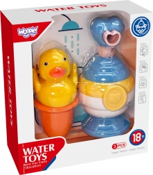 Zestaw zabawek do kąpieli marki Woopie zamieni codzienną kąpiel w prawdziwą przygodę! Zawiera kaczuszkę, dozownik mydła i kolorowy kubeczek. Dozownik mydła spienia mydło w delikatną pianę, co dodaje zabawy podczas mycia.