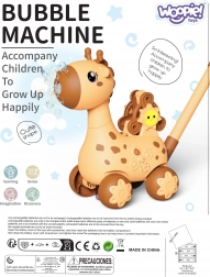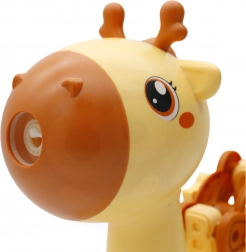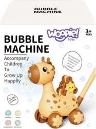 Zabawna żyrafa marki WOOPIE to urządzenie do baniek 2w1 i pchacz-chodzik dla dzieci od 3 lat. Podczas jazdy wypuszcza mnóstwo baniek, gra wesołą melodię, a dzięki wbudowanemu wiatraczkowi posyła bańki jeszcze dalej. Do tego efekty świetlne, odłączana prowadnica oraz cztery stabilne koła ułatwiają sterowanie w domu i na zewnątrz.