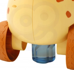 Żyrafa wypuszcza bańki z wysoką częstotliwością, a wiatraczek rozdmuchuje je jeszcze dalej – idealne do zabawy na zewnątrz i w domu.
