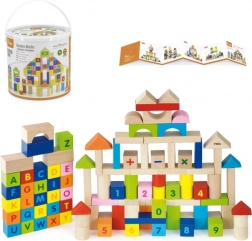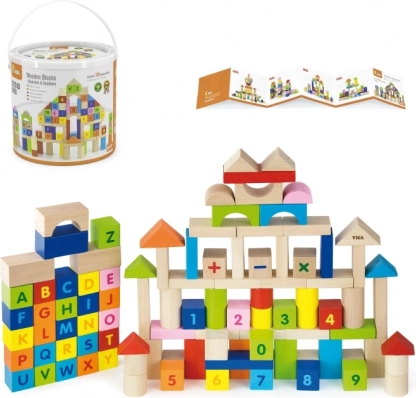 Ten kolorowy zestaw 100 drewnianych klocków VIGA inspirowany zasadami MONTESSORI daje dzieciom radość z odkrywania liter, cyfr i prostych zadań matematycznych. Dzięki różnym kształtom – kostkom, walcom, łukom i dachom – dzieci mogą budować miasta, wieże i fantazyjne konstrukcje, a przy tym niepostrzeżenie ćwiczyć alfabet, liczenie oraz rozpoznawanie kolorów.