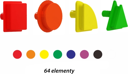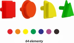 Zabawa tym zestawem zachęca do logicznego myślenia, kreatywnej rozrywki oraz rozwija zarówno małą, jak i dużą motorykę. Kołeczki są dostępne w 4 różnych kształtach geometrycznych i 8 kolorach, co umożliwia szeroką kreatywną różnorodność.