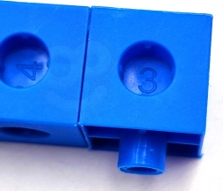 Każdy element jest ponumerowany i odznaczony kolorem, co pomaga dzieciom w rozpoznawaniu i nauce podstawowych umiejętności matematycznych.