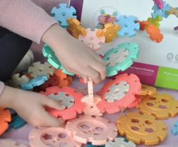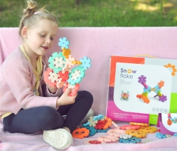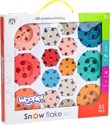 Klocki konstrukcyjne Wafle od marki WOOPIE zaciekawią i zabezpią Twoje dziecko. Ich kolorowe elementy przypominają płatki śniegu. Dzięki prostemu łączeniu i składaniu można z nich tworzyć interesujące trójwymiarowe konstrukcje. Klocki zawierają otwory, które umożliwiają ich ukośne łączenie, a nie tylko prostopadłe.