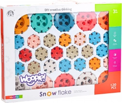 Klocki Śnieżynki od Woopie to świetna zabawka, która w fascynujący sposób rozwija dziecięcą wyobraźnię i myślenie logiczne. Dzięki unikalnemu wzornictwu i otwartym otworom w śnieżynkach elementy można łączyć nie tylko prostopadle, ale także pod kątem, co poszerza granice kreatywności.
