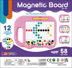 Dzięki magnetycznej tablicy MagPad i magnetycznemu pisakowi dzieci mogą z łatwością tworzyć różne kształty. Zestaw zawiera 84 magnetyczne przyciski, co daje dzieciom nieograniczoną przestrzeń dla własnej kreatywności. Przyciski są solidne i trwałe, a ich umieszczanie jest intuicyjne i proste.