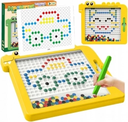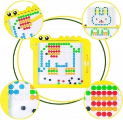 Dzieci układają kolorowe obrazki i wzory według szablonów lub własnej wyobraźni. Magnetyczne guziki dobrze się trzymają, a praca z nimi jest prosta nawet dla najmłodszych.