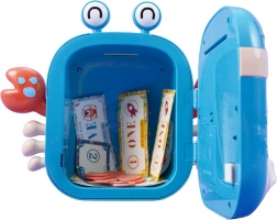 Po naciśnięciu cyfr krab wymawia liczby po angielsku i odtwarza melodie. Dzieci uczą się rozpoznawać liczby, a jednocześnie bawią się podczas wpisywania kodu PIN.